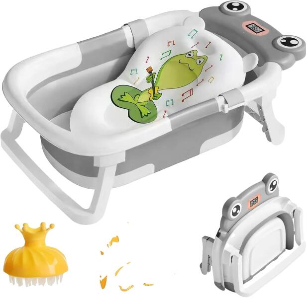 Baba fürdőkád, valós idejű hőmérséklet-érzékelő, összecsukható kialakítás, SZÜRKE