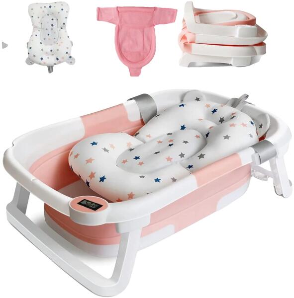 Összecsukható babakád hőmérővel és puha betéttel - Rózsaszín ? Ez a praktikus és helytakarékos babakád tökéletes választás újszülöttek és kisbabák számára 3 éves korig. A beépített hőmérővel és a puha fürdőszőnyeggel a fürdetés biztonságos és kényelmes élmény lesz. Főbb jellemzők és előnyök: ?️ Beépített hőmérő: Folyamatosan figyeli a víz hőmérsékletét, így biztos lehetsz benne, hogy a víz ideális a babád számára. ? Puha fürdőszőnyeg: Kényelmes támaszt nyújt a baba fejének és nyakának, így a fürdetés még kellemesebb. ? Összecsukható kialakítás: Könnyen tárolható és szállítható, ideális utazáshoz és kis helyekre. ? Tartós és biztonságos anyagok: Környezetbarát anyagokból készült, amelyek megfelelnek a szigorú biztonsági előírásoknak. ? Csúszásmentes lábak: Stabilitást biztosítanak a fürdetés során. Műszaki adatok:Jellemző ÉrtékAnyag Polipropilén és TPEMéretek Összecsukható a könnyű tárolás érdekébenKompatibilitás Újszülöttek és csecsemők számára 36 hónapos korigBiztonság Megfelel az európai biztonsági előírásoknakKarbantartás Könnyen tisztítható és száríthatóSzín RózsaszínEz a babakád praktikus ajándék lehet újdonsült szülőknek is! ?