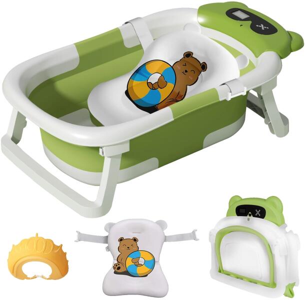 Összecsukható babakád hőmérővel és puha betéttel - Zöld színben ? Ez a praktikus és helytakarékos babakád tökéletes választás újszülöttek és kisbabák számára 3 éves korig. Az összecsukható kialakításnak köszönhetően könnyen tárolható és szállítható, így utazáshoz is ideális. A beépített hőmérő és a puha fürdőszőnyeg pedig a baba kényelmét és biztonságát szolgálja. Főbb jellemzők: ?️ Beépített hőmérő: Folyamatosan figyeli a víz hőmérsékletét, így biztos lehetsz benne, hogy a baba számára ideális a fürdővíz. ? Puha fürdőszőnyeg: Kényelmes támaszt nyújt a baba fejének és nyakának a fürdés során. ? Összecsukható kialakítás: Könnyen tárolható és szállítható, így kis helyen is elfér. ? Biztonságos anyagok: Környezetbarát és biztonságos anyagokból készült, megfelel a szigorú biztonsági előírásoknak. ? Csúszásmentes lábak: Stabilitást biztosítanak a fürdetés során. Műszaki adatok:Jellemző ÉrtékAnyag Polipropilén és TPEMéretek Összecsukható a könnyű tárolás érdekébenKompatibilitás Újszülöttek és csecsemők 36 hónapos korigBiztonság Csúszásmentes támasztólábakTanúsítvány Megfelel az európai biztonsági előírásoknakKarbantartás Könnyen tisztítható és száríthatóSzín ZöldEz a babakád nem csak praktikus, de biztonságos és kényelmes is a babád számára. Ideális ajándék újdonsült szülőknek! ?