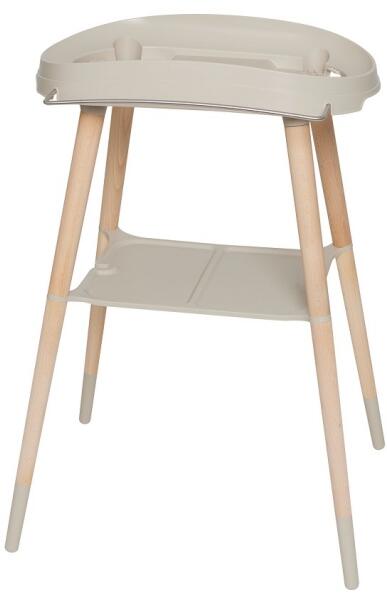 Stílusos állvány a Bébé-Jou Sense babakádakhoz, kecses fa lábakkal. A fehér műanyag és természetes benyomású bükkfa lenyűgöző kombinációja.